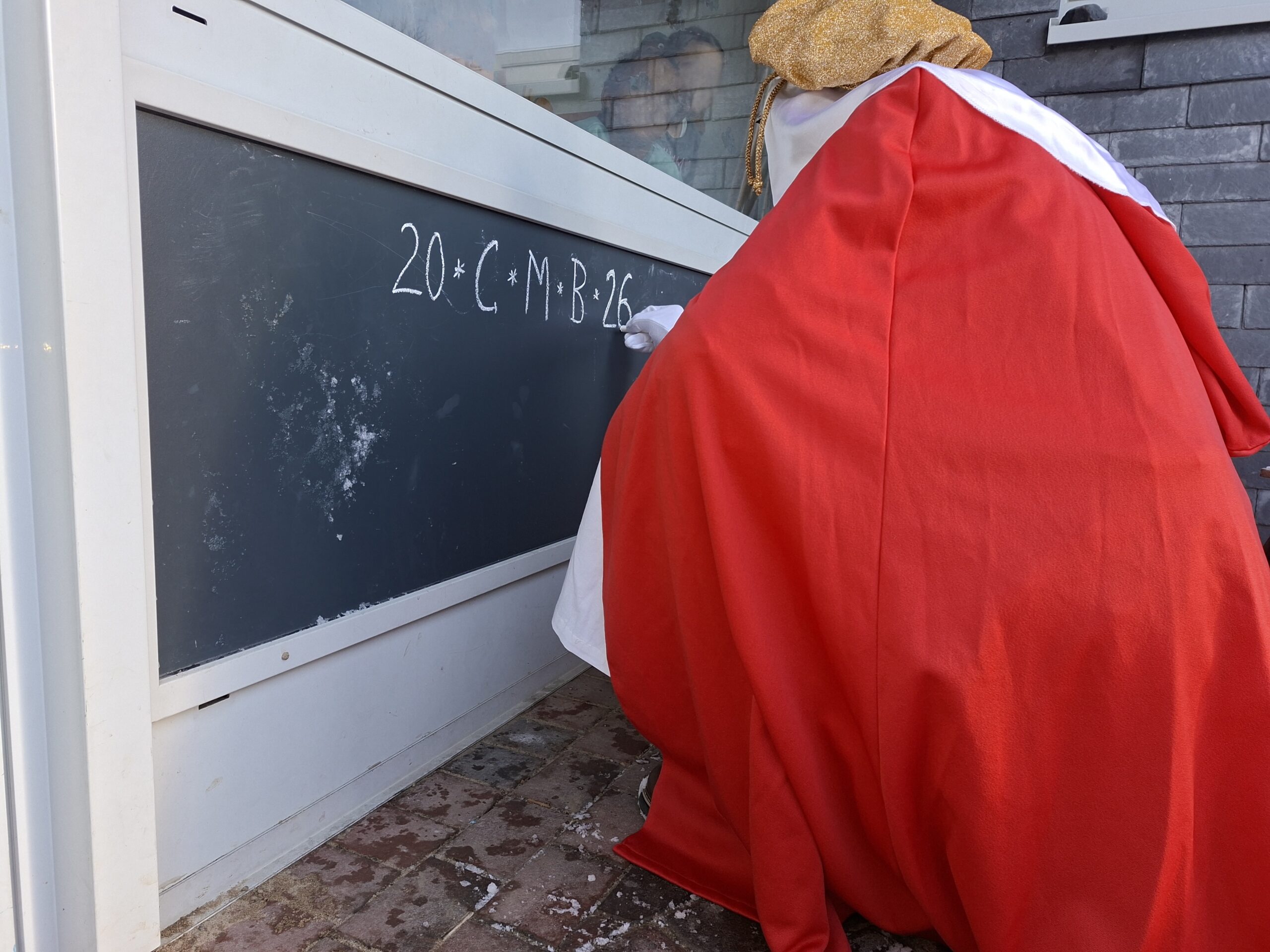 Zum Abschluss schrieben die drei Könige unter den wachsamen Augen der Kinder ihren Segen an unsere Außentüren.